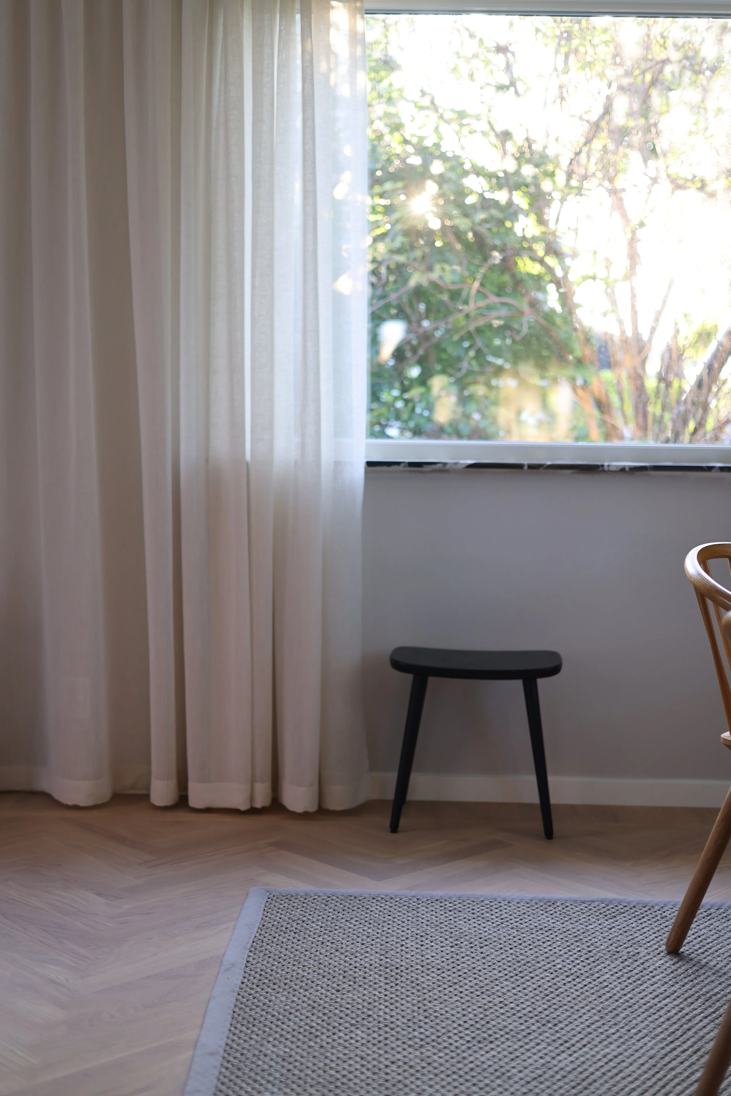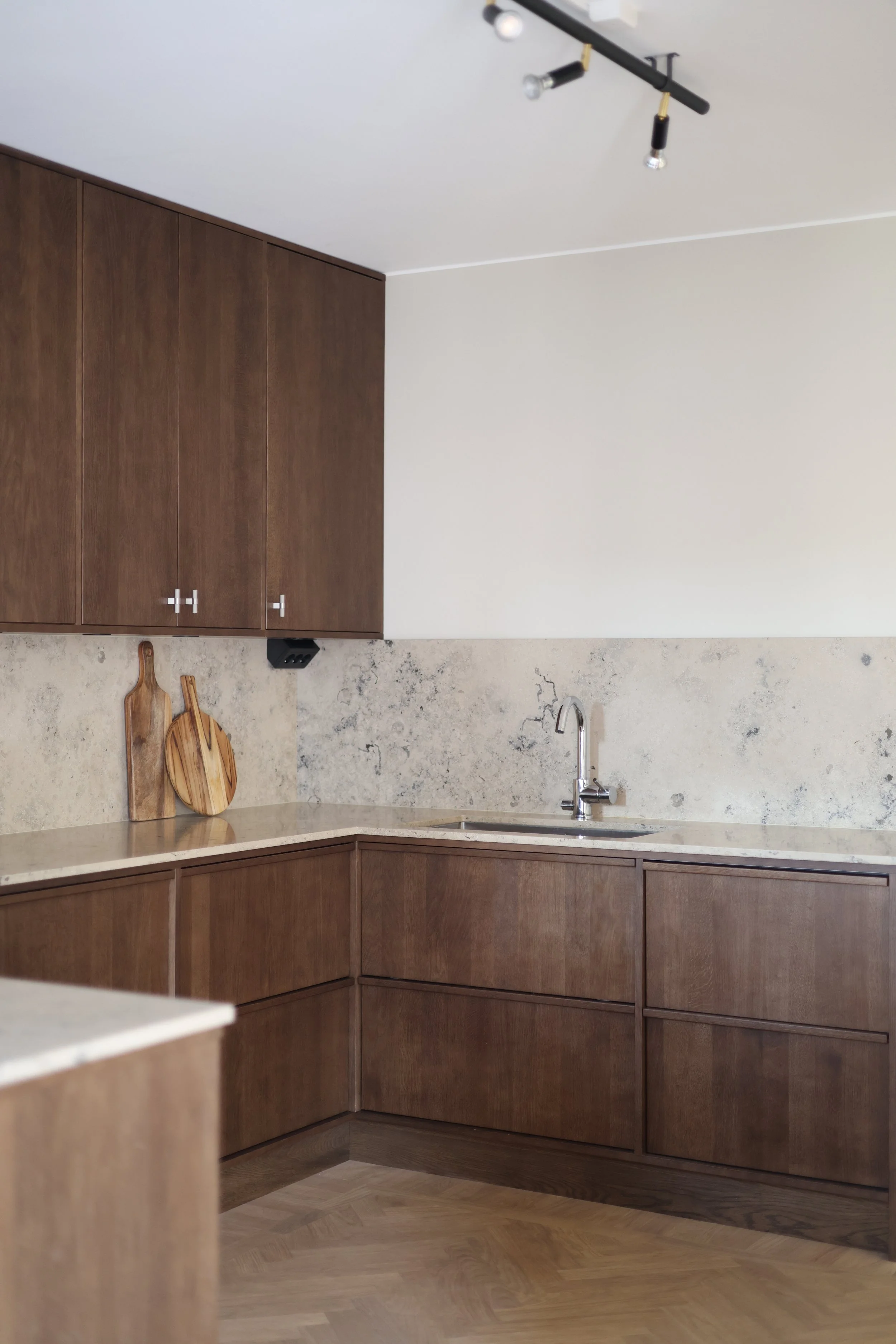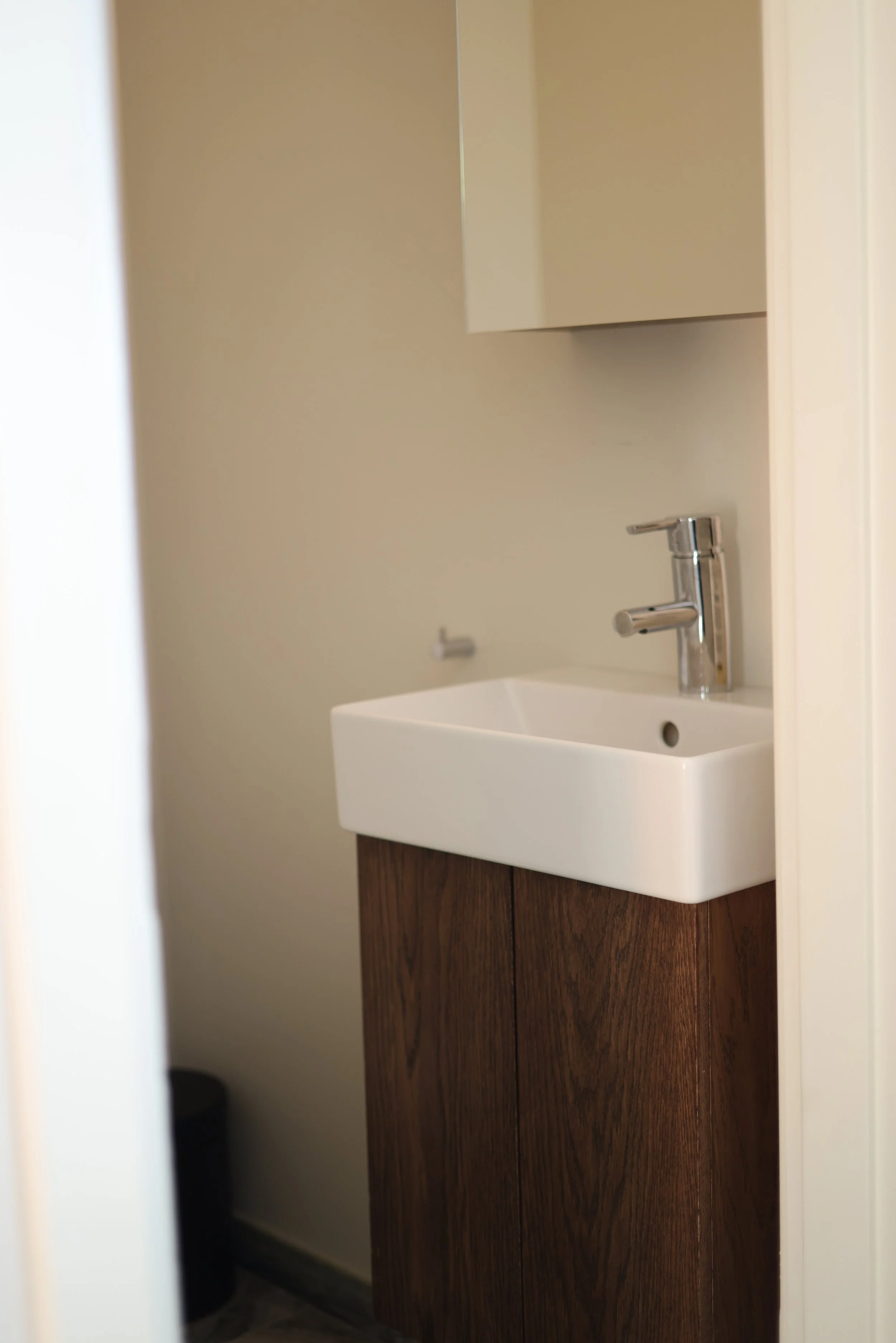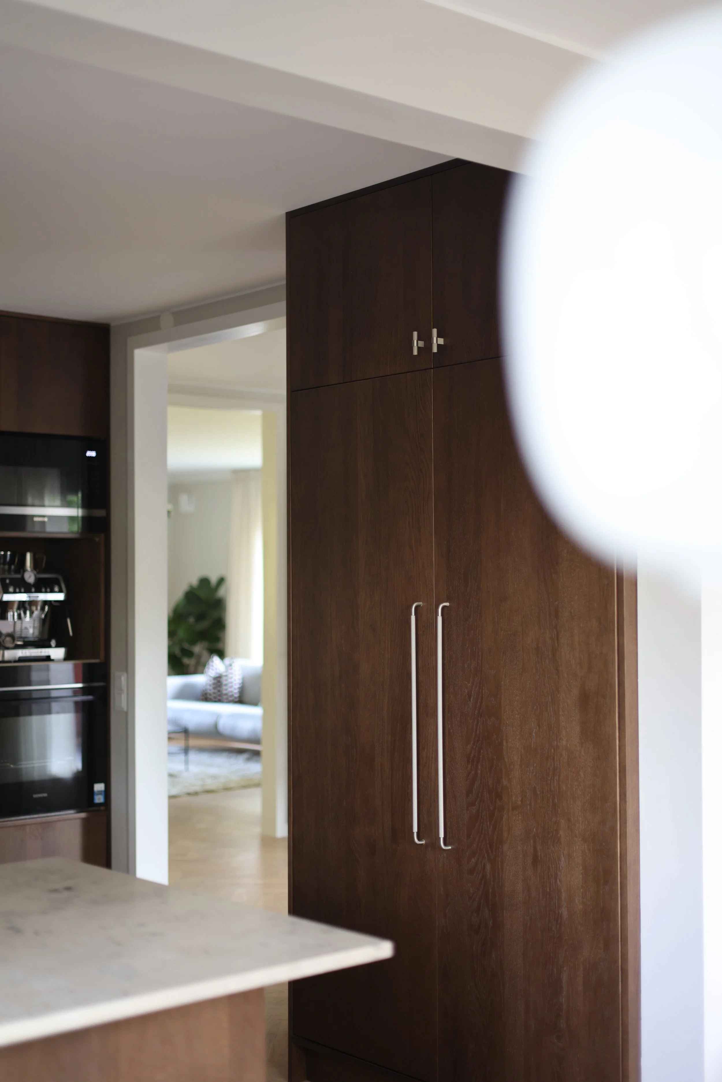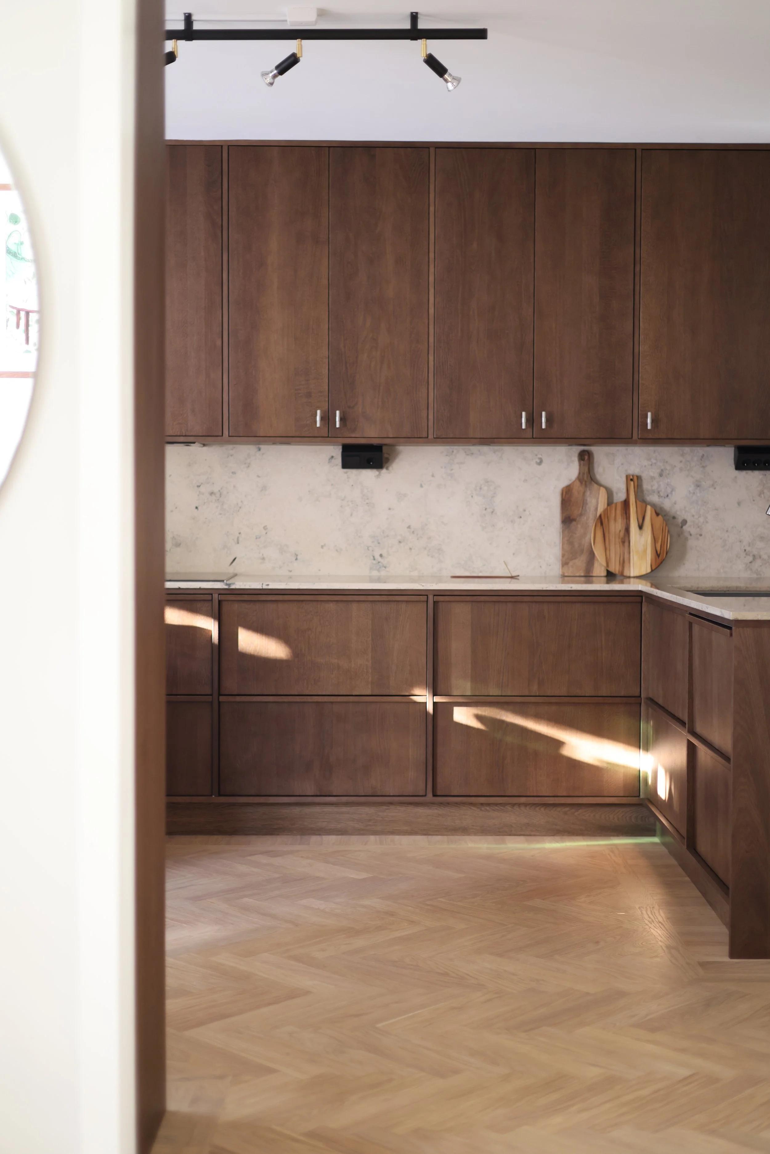 Months prior to execution, a material board was developed with the client and our interior designer, to ensure continuity of palette and texture across the house. Once the spatial layout and color scheme were defined, craftsmen translated the design into detail. The completed kitchen showcases the intended narrative: a refined balance of material honesty and spatial clarity.